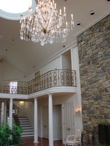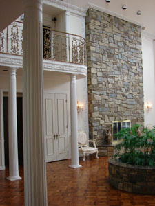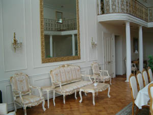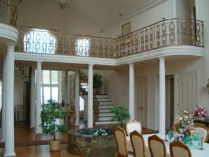 - Large great hall/ballroom with a fountain, huge glass dome skylight and a grand stone fireplace